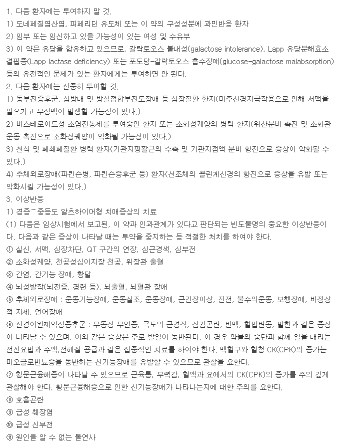 이번 포스팅은 전문의약품 도네필정 5mg(Donepil Tab. 5mg)의 효능과 복용법, 주의사항에 관하여 알아보겠습니다.